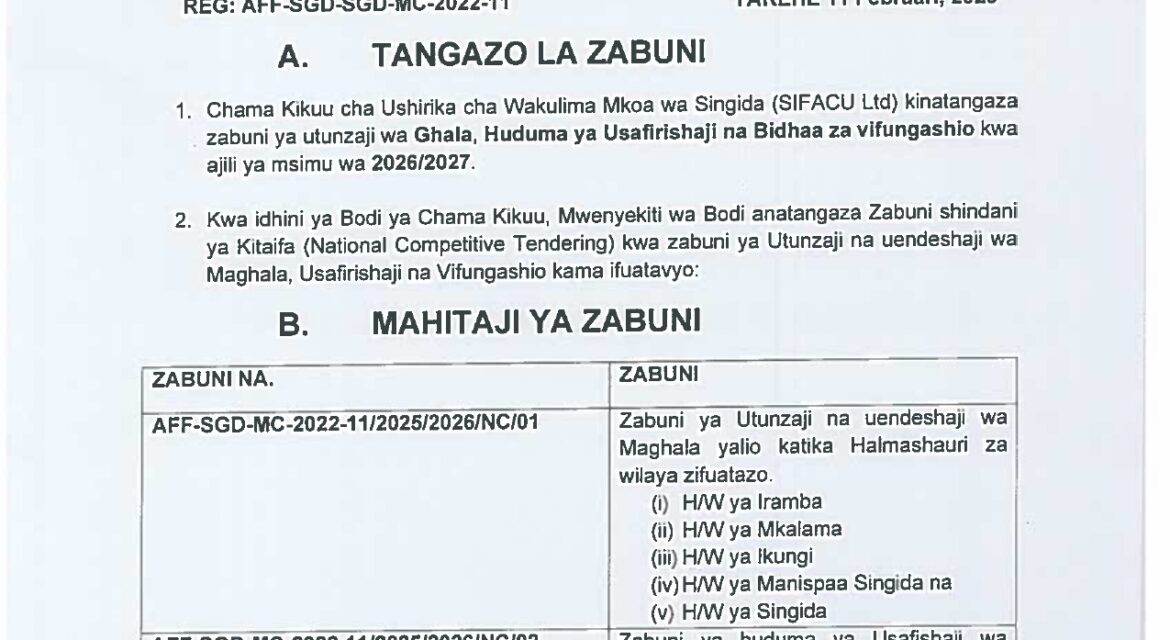 TANGAZO LA MKUTANO MKUU WA KUMI NA MOJA (11) – SIFACU LTD